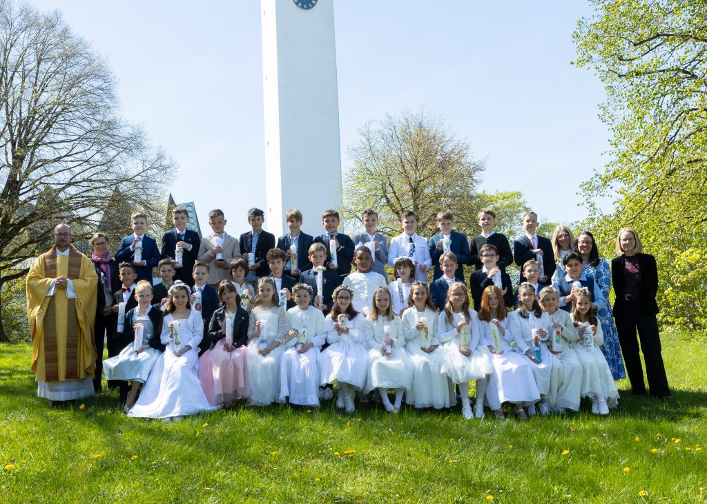 Seit dem 1. Advent wurden 36 Kinder auf ihre erste Heilige Kommunion vorbereitet. Das Thema lautete in diesem Jahr „Ihr seid meine Freunde“. Am 26. April war dann der große Tag gekommen. Unser Bild zeigt die Kommunionkinder mit dem Erstkommunionteam nach dem Gottesdienst mit dem EK-Team.