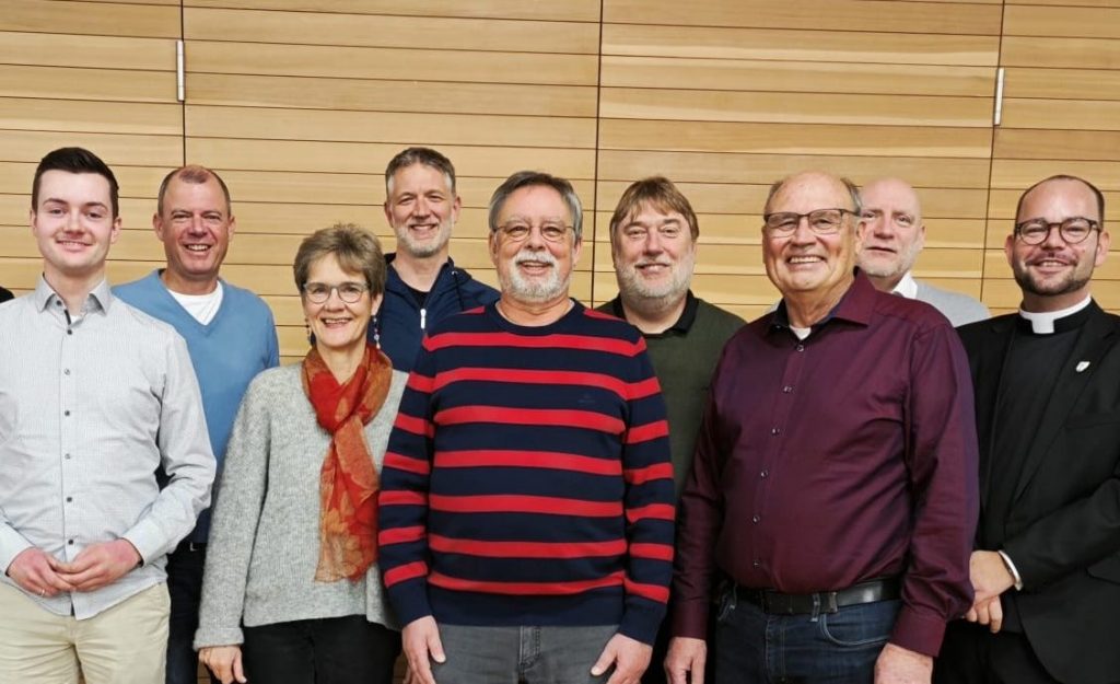 von links nach rechts: Sebastian Klasmeier, Tobias Wohlfahrt, Claudia Mühlendyck, Tobias Ridder, Michael Kruse, Thomas Müller, Hubert Schlee, Werner Bauer, Pfarrer Gregory Herzel