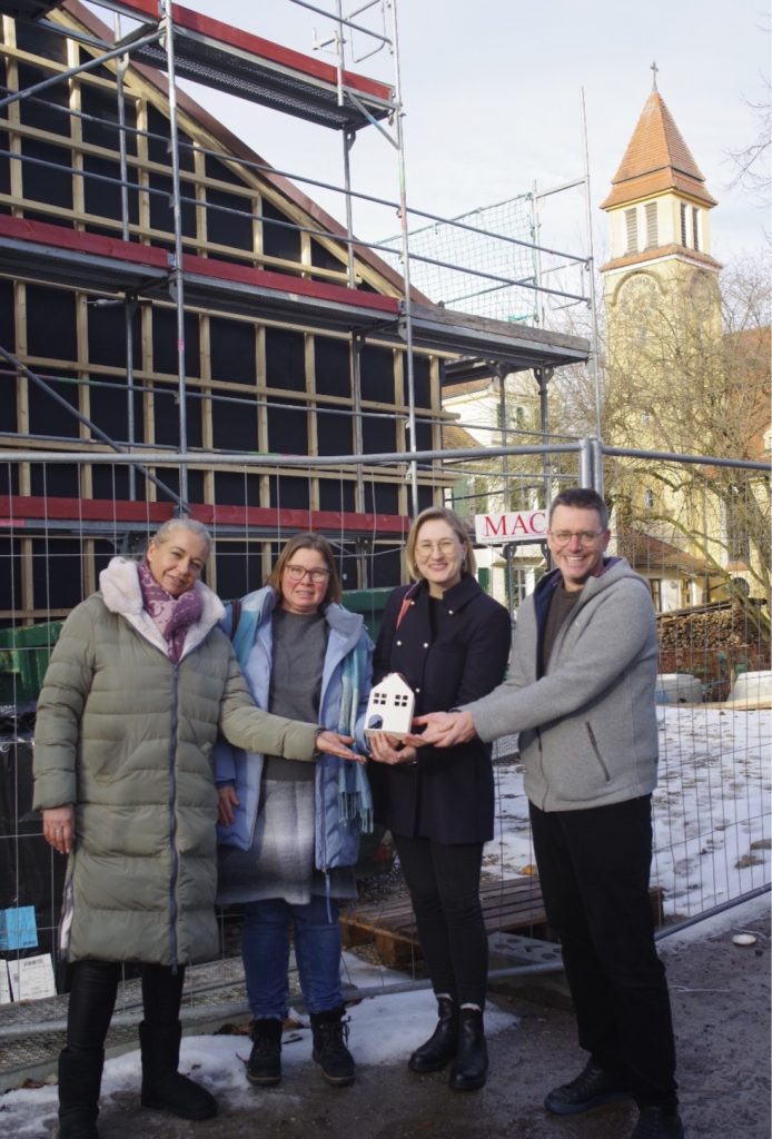 Einen Teil der Kollekte aus der Nacht der Lichter 2025 übergab das ökumenische Vorbereitungsteam im Januar an Pfarrer Siegfried Martin, Kindergartenreferentin Marion Remberger und Kindergartenleitung Nicole Salzinger von der evangelischen Gemeinde. Damit wird in eine lebendige Zukunft investiert und der Kindergartenneubau unterstützt.